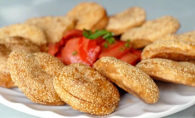光饼的外形有点像汉堡包的面包胚,它在明朝中叶就广泛流传于戚家军中,当时匪寇横行,戚家军奉命剿灭,后百姓也称之为“征东饼”。这款美味饼身脆香,馅料多样,表层焦香的芝麻让人食欲大增,加上三层夹肉的“设计”,让这款“军用美食”瞬间火遍当地,并绵延至今。