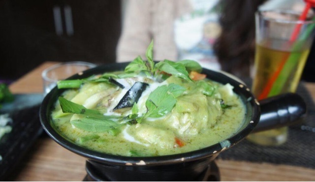 泰国绿咖喱是一种辣味十足的美食,以椰汁、椰糖、青椒等天然食材为主要原料,带来浓郁的香气和味道。