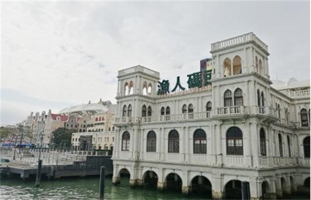 码头位置:澳门渔人码头位于澳门外港新填海区的海岸,临近香港的港澳码头,在建造完成以后试业一年,2006年正式开幕。其主题区域分成了多期,每一期的工程量都有所不同。