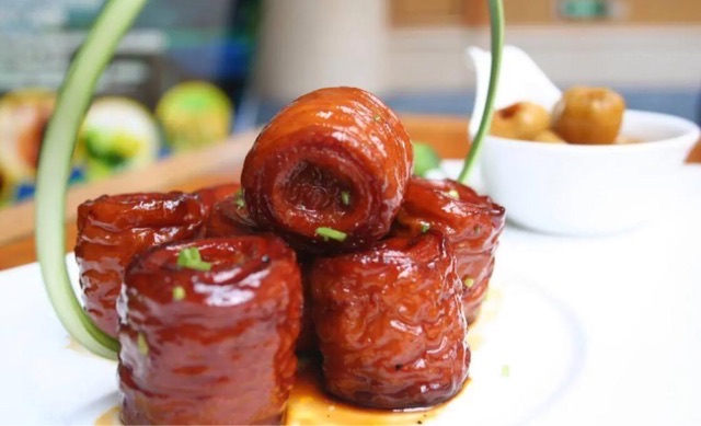 把子肉早在清朝年间就有了,就是用草绳捆着五花肉加上酱油煮制而成,做好的肉入口即化,肥而不腻,属于一道非常传统正宗的鲁菜,吃着多滋多味,酱香浓郁,搭配着米饭去吃很爽,特别下饭。