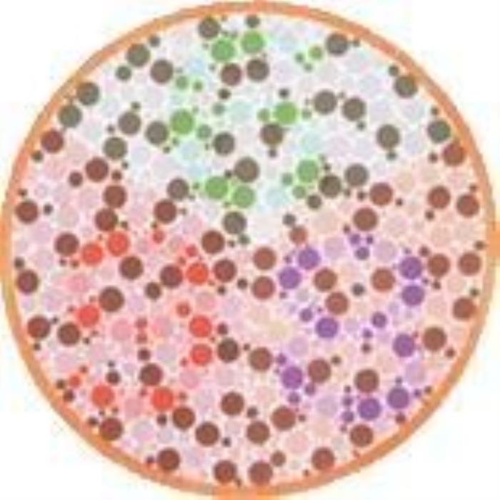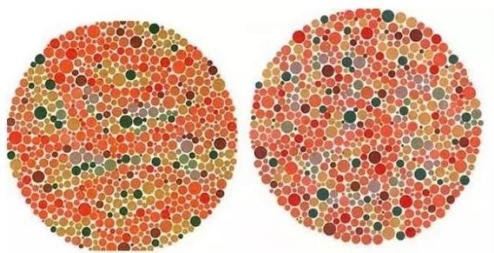 左图:全色弱者及正常者读不出来,红绿色盲者及红绿色弱者大多能看到5