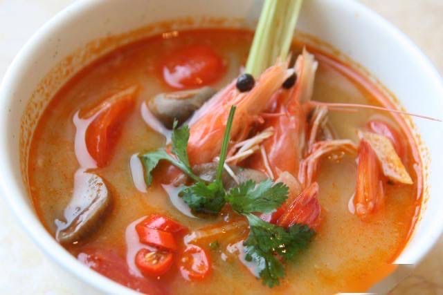 这道汤的名字中,“冬阴”是酸辣的意思,“功”是虾的意思,翻译过来其实就是酸辣虾汤。不过冬阴功汤极辣,其中还放有大量咖喱,不过习惯了之后不少人倒是会贪恋上它。