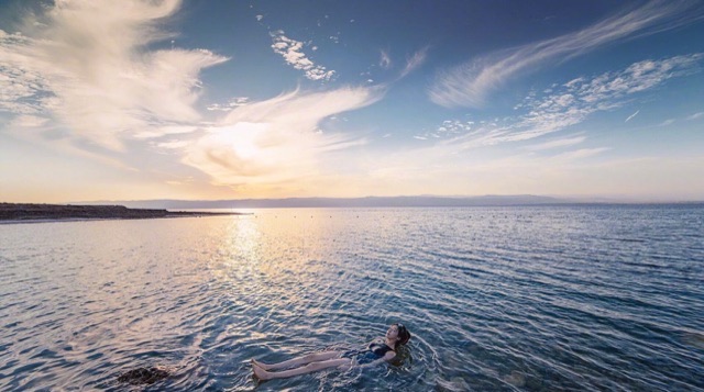 2、死海不仅是最低的湖泊,也是最咸的湖泊。死海表层湖水的含盐度达25%,深层湖水的含盐度高达30%。相当于海水平均含盐度的7~10倍。由于湖泊死海含盐度最高,盐水比重很大,人在水中不会下沉,在湖中游泳,和在地面上爬行差不多。