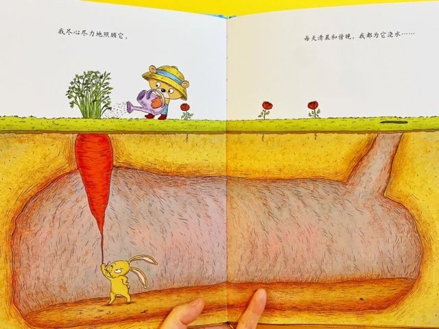 🌟🌟读到故事结尾,让我突然想到孔子的那句“求仁得仁,又何怨乎”,我在读故事的时候,真的心疼小熊精心培育出的胡萝卜被一群贪吃的兔子偷吃,甚至想到他后来发现真相后会不会伤心和愤怒,没想到结局的大反转让我豁然开朗,小熊一开始想要的就是一朵花而已呀,他已经得到自己想要的,为什么要心疼自己失去的胡萝卜呢?