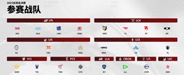分别是越南VCS联赛的GAM战队和TW战队,东南亚、港澳台PCS联赛的PSG战队、CFO战队,拉丁美洲LLA联赛的R7战队,巴西CBLOL联赛的LLL战队,日本LJL联赛的DFM战队,欧洲LEC联赛的BDS战队(LEC/LCS四号种子之间的胜者)。