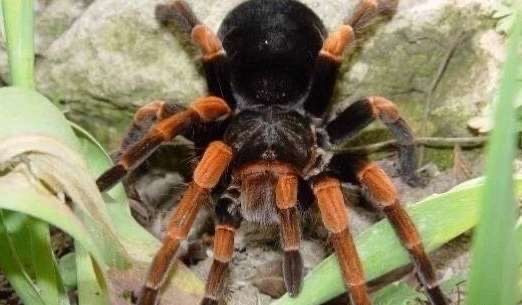 通体黑色反射红光,脚是玫瑰红色这是这种无攻击性蜘蛛的明显特征。红脚蜘蛛喜欢群居,是唯一一种群居而不会相食的蜘蛛。它们没有毒液,你可以放心地用手爱抚它们。不要犹豫了,它们是作宠物蜘蛛的不二之,是世界上十大巨型蜘蛛之一。