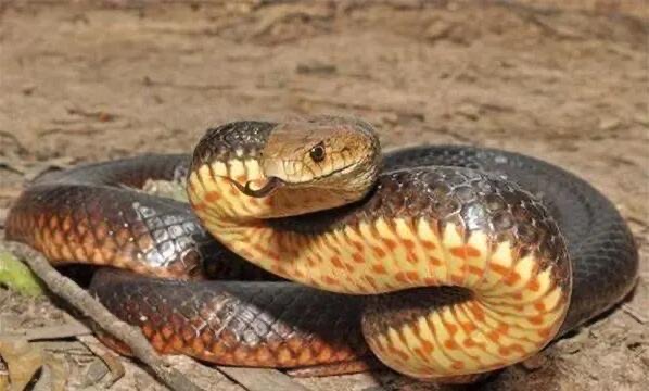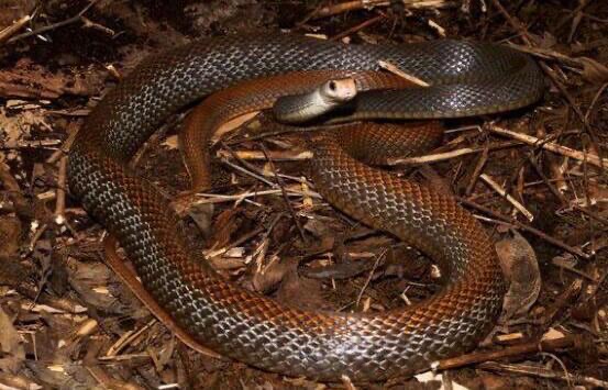 西部拟眼镜蛇是世界十大致命毒蛇之一,头部是椭圆,主要是分布在澳洲等地,栖息于树林、草原、沙漠等地,主要是以爬行动物和哺乳动物为食。