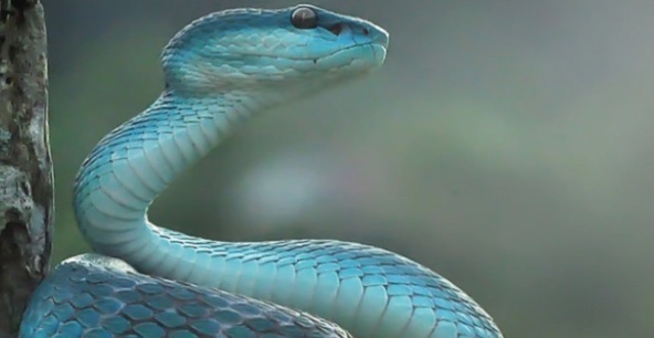 蓝蛇属于绿树蟒的变异···十分珍贵,售价能达到数十万美元,跟一辆兰博基尼的价格差不多。而且有钱你不一定能买得到。