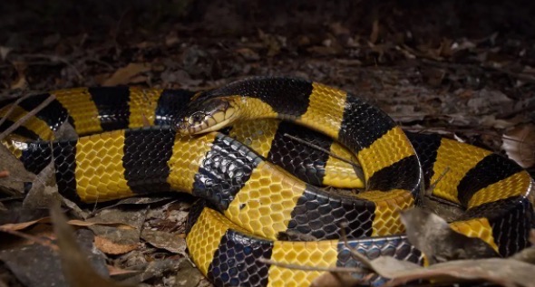 金环蛇是一种非常美丽的蛇类,身上的金和黑色花纹让人不由得为之惊叹。但金环蛇也是一种毒性很强的蛇类,需要小心防范。