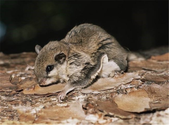 它经常趴在高大的树干上,长尾巴垂着,或者活跃在树梢上,形态与松鼠很接近,但当它张开翼膜,两者的区别就很明显。