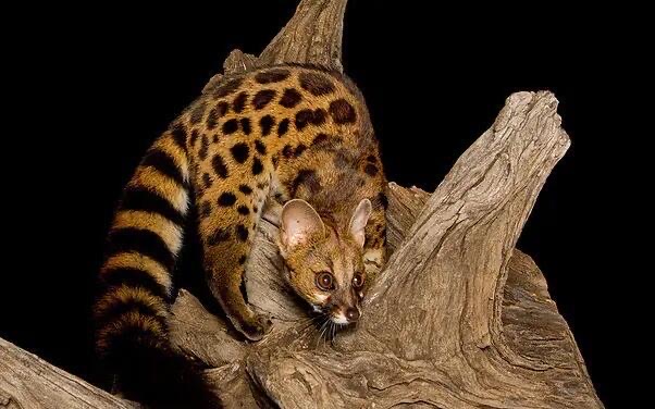 斑点香猫产于非洲,对于那些喜欢独立性强的宠物的人来说是非常好的选择。香猫十分好动。它们看上去像是雪貂,猫和浣熊的混种。斑点猫极易不安,所以最好在家里只有这一只宠物啦。而这个十大常人难养的奇葩动物之一,栖息于树上,夜晚活跃,以昆虫、水果、腐肉、爬行动物小鸟和啮齿类动物为食。喜欢吃咖啡果实的麝猫,排泄出的咖啡豆,经过加工,就成为世界上十大最贵的咖啡之一麝香猫咖啡。