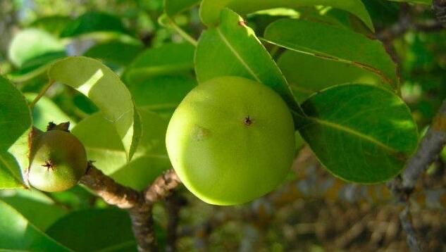 毒番石榴看上去就像普通的可食用果实一样,平平无奇,很容易被人误食。毒番石榴在美洲地区较为常见,其中所含有的佛波醇毒素却对人体有着极大的危害,只需要一点毒番石榴的汁液,就可以让皮肤迅速气泡,倘若燃烧毒番石榴,所产生的的烟雾会导致人瞬间失明。
