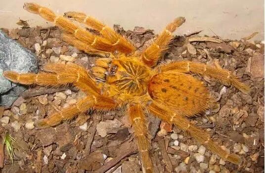 烈阳巴布的浑身都是金黄色的,全身都是毛茸茸的,看起来很可怕,体型也比较大,但是这种蜘蛛的毒液没有致命的攻击性,不会对人类造成太大的伤害。