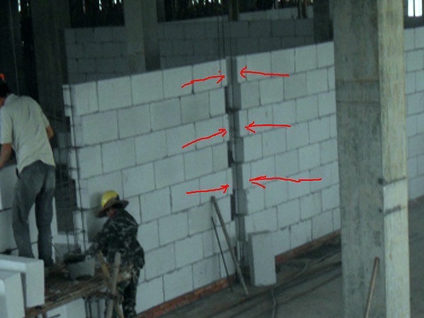 下部砌筑200MM高水泥砖,强度要比砌块高一些,防潮要好一些;顶部与梁板交接处用水泥砖斜砌筑密实,斜砌就是砖斜立砌,才可以砌实。【周边网】目的是在浇筑构造柱时使墙体与构造柱结合的更牢固,更利于抗震。