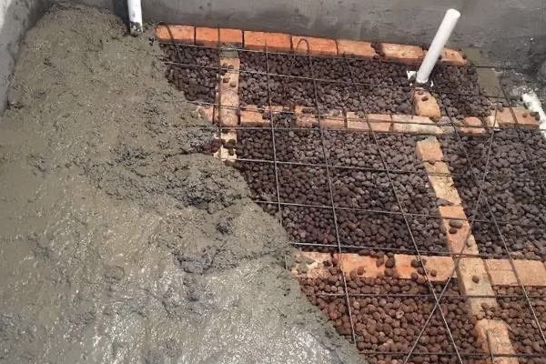 在进行轻质陶粒回填前,应将沉箱清理干净,并将进水和出水管道固定好,以免在回填时碰动管道。同时在沉箱底部刷防水涂料,防水涂料要刷2-3遍,做到均匀涂刷,侧面四周的防水高度要刷到超出沉箱上沿40厘米以上,这样上层如果渗水,水就可以直接流进地漏。