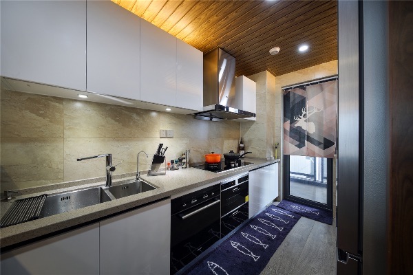 2、按照中国女性的升高,吊柜柜体本身的高度在650~780mm左右,标准高度为700mm。中国女性的大致升高在160cm左右,在实际的操作中能够到175cm左右的高度,一般需要能够够到吊柜中间部位。这样的话,计算出来的台面据吊柜的中间距离为50~60cm,这样能够保证操作区宽敞,方便存取放于物品。如果常规尺寸不能满足厨房高度需求,可以适当的调整地脚来调节一下所需要的整体高度。