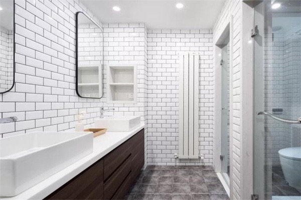 当洗漱台移到厕所外时,该区域必须防水。墙面防水层高度必须不低于1.5m,墙面和地面应贴瓷砖,以防漏水时墙面受潮发霉。