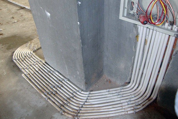 8、暗线敷设必须配管,空心楼板除外(空心楼板用护套线),强弱电不能穿入同一根管内。管内电线应处于宽松状态。