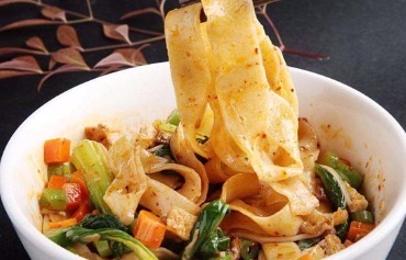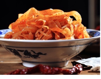 凉皮是陕西一种非常具有地方特色的风味小吃,尤其在关中各城镇大街小巷的饮食摊点上极为普遍。它以筋、光、辣香、清凉等特点,深受人们的青睐。