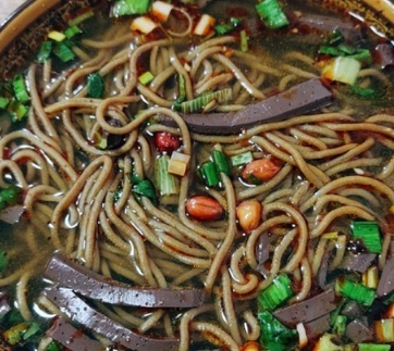 南七饸饹以地名命名,是咱渭南特色小吃,极具特色,芥末的呛,臊子的香,饸饹的筋,有凉拌、肉素臊子汤、羊血三种吃法,小编我挺喜欢吃的,尤其是那里面的芥末味,芥末调得少了味道不足,芥末多了又是呛鼻,介于两者之间就味道刚刚好,饸饹从汤锅里面煮好捞出过凉水,增加了它的韧性,弹性更佳。
