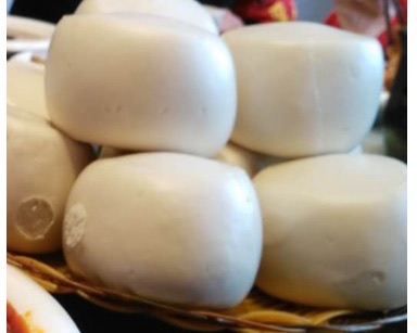 椽头蒸馍是陕西省渭南市蒲城县的著名传统特色小吃,看似普通的蒸馍却历史悠久。因上圆、周方、形如切断的椽头而得名,椽头蒸馍和面不用碱发酵难掌握,制作过程独特,其内酥外光,皮白色匀,干香耐贮,堪称馒头一绝。