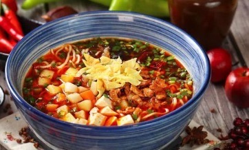 西安肉丸胡辣汤,是西安本地的特色小吃。主料有牛肉、圆白菜、胡萝卜、豆角、土豆,辅料有淀粉、花椒粉、五香粉、盐、料酒、鸡精、牛肉浓汤煲、葱姜等。【周边网】