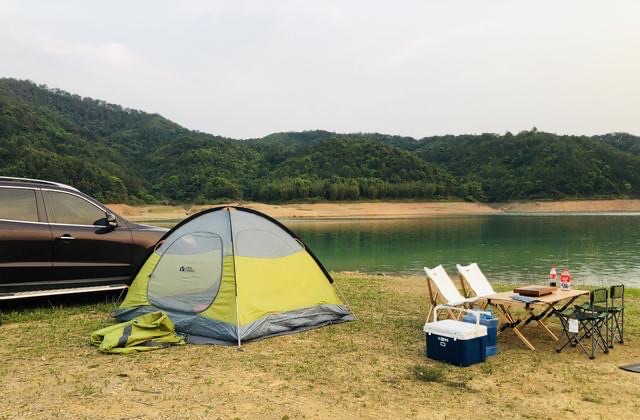 5.自由人户外露营基地藏得很深的一个露营基地,从万绿湖的沿湖马路边有一个口子,一段土马路,不过开进去就有种阔然开朗的感觉。停车场很大,湖边也有大草坪,这里还有一户人家,应该是管理员吧!听条友说在这里露营野炊好像要收20块钱,不过小编没遇上这事。