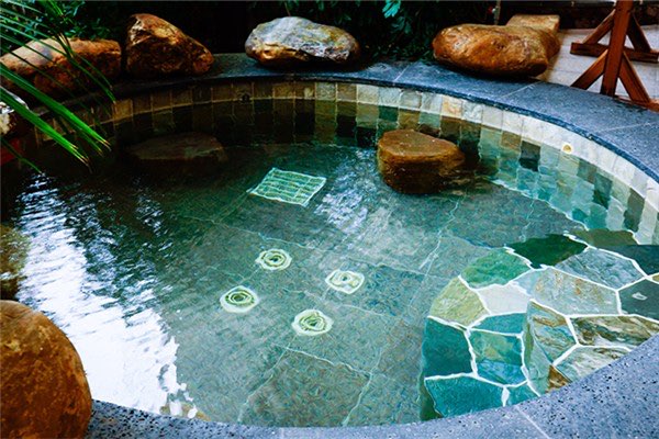 6、进入温泉池前,脚先入池,先泡双脚,再用双手不停地将水温泼淋全身,适应水温后才全身浸入。