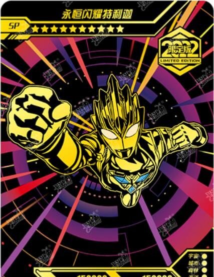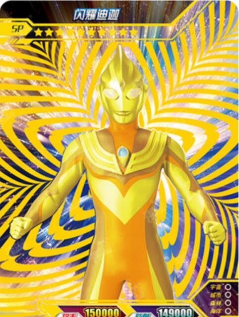 迪迦的人气在国内是很高的,不过关于迪迦的卡一直都很少,这张SP闪耀迪迦,不仅是SP的稀有度,而且是迪迦的闪耀形态,是迪迦最稀有的一张,人气很高。