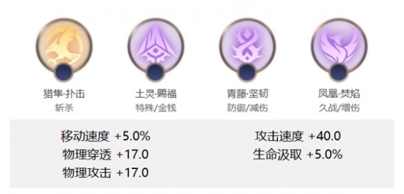 猎隼·扑击、土灵·赐福、青藤·坚韧、凤凰·焚焰
