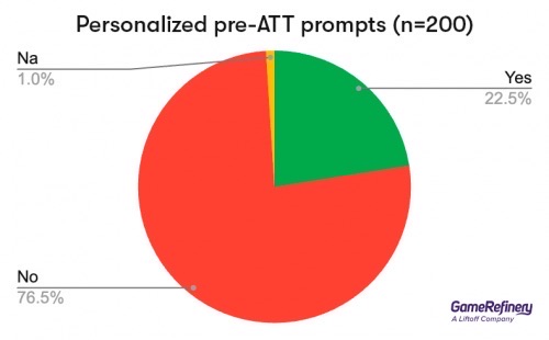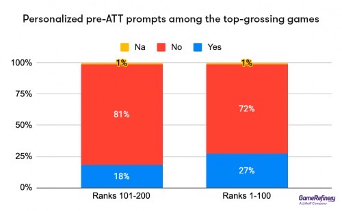 对这些数据的分析表明,收入最高的游戏以及希望通过定向广告增加收入的游戏最有可能展示个性化ATT弹窗预提示。