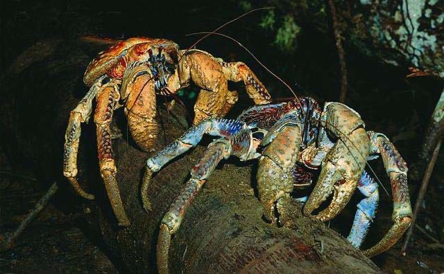 椰子蟹是寄居蟹的一种,可以长到1米长。[bai]它不仅是最大的陆生蟹,也是最大的陆栖节肢动物。椰子蟹的身体很大,最大重量为6公斤。椰子蟹的壳很硬,它有两个强壮的巨爪。它是一个爬树专家,尤其擅长攀爬直地椰树,因为它们可以用强壮的双爪剥开坚硬的椰子壳,吃椰子肉。椰子蟹生活在海边的热带森林里。当它们在繁殖季节返回海洋时,它们的幼虫在海洋中生长。椰子蟹生活在整个印度洋和西太平洋。【周边网】