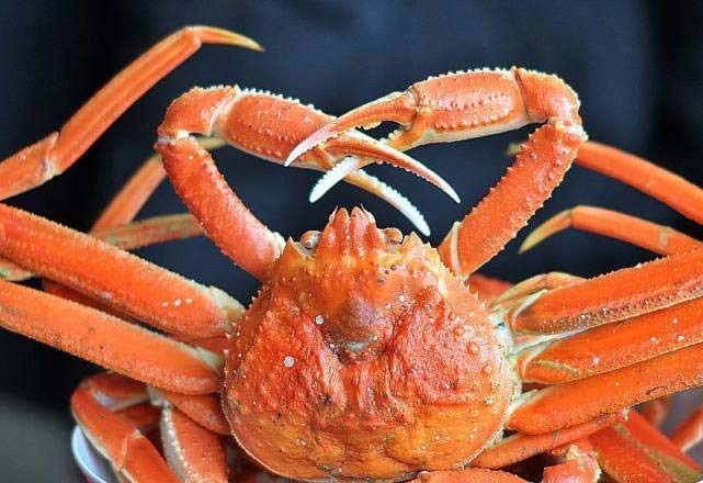 雪蟹学名:灰眼雪蟹。常见名称:雪蟹、皮匠蟹(美国)、皇后蟹(加拿大和欧洲)。体型:700-1100克灰眼雪蟹;1400-2500克红眼雪蟹。雪蟹主要产于美国阿拉斯加,产于北大西洋(加拿大大西洋沿岸省份)和北太平洋(俄罗斯远东、美国阿拉斯加、日本北海道)。
