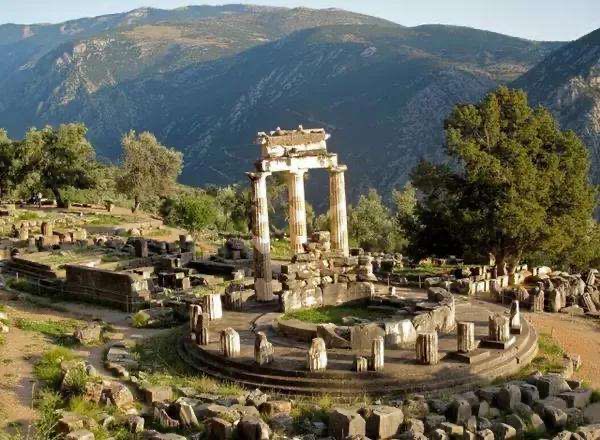 阿波罗神庙始建于前7世纪,在古希腊时代被认为是世界的中心也是古希腊的宗教中心和统一的象征。神庙区还有露天剧场和圣路,圣路两旁有希腊各邦为供奉诸神而兴建的礼物库、祭坛、纪念碑、柱廊等。
