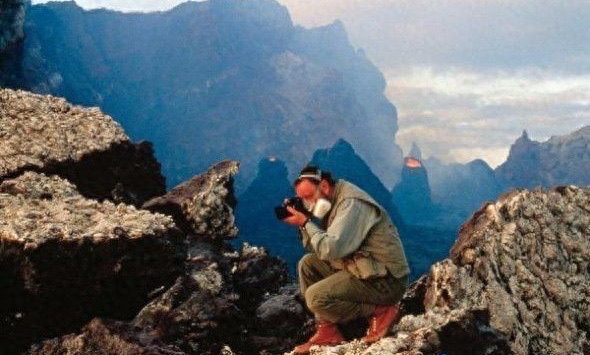 夏威夷的几劳亚活火山从1983年开始,一直比较活跃。如图所示一名摄影师在该火山的一个火山口拍照。【周边网】