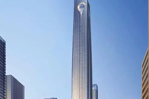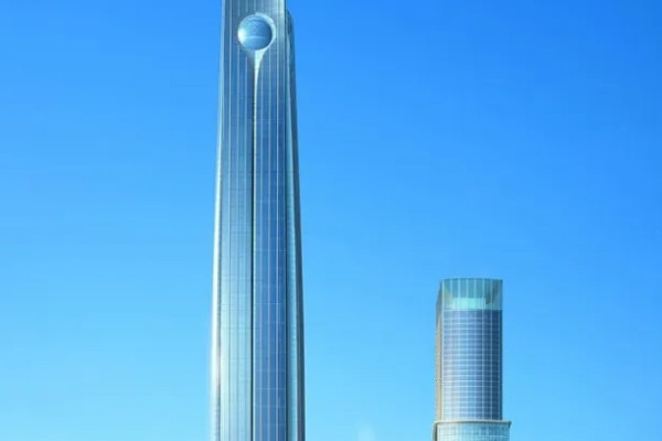 东北第一高楼沈阳宝能环球金融中心,位于辽宁省沈阳市沈河区,作为青年大街沿线的标志性建筑,它的T1塔楼高度,多次进行了缩水,因为高度的大幅度变化,整体的效果图也发生了非常大的变化,之前象征着北方明珠的造型寓意已然消失,新楼的顶部城V型。【周边网】