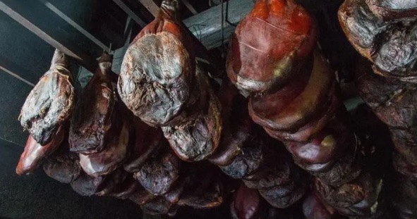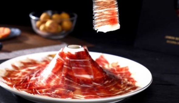 这是世界上最有名的火腿之一。伊比利亚火腿来自西班牙的黑毛猪,其肉质鲜美,富含脂肪,口感丰满,有浓郁的风味。