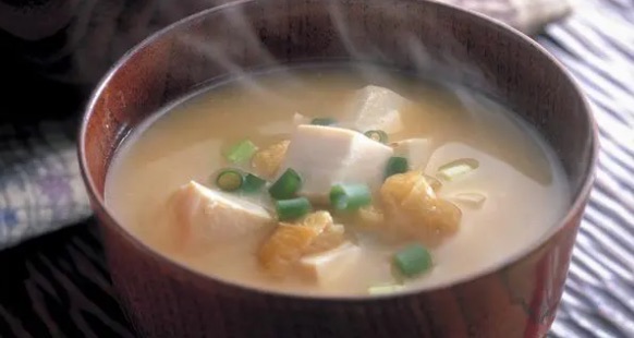 味增汤源自日本,在当地有着“国汤”的称号,味增汤是用鲷鱼、鱼骨、萝卜等食材制作,口感清淡又鲜美,不仅可以直接喝,有时候还会用来做其他食物的汤底。