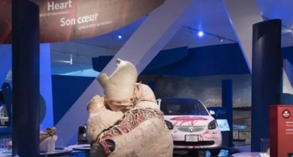 这个蓝鲸的标本是科学家们在2014年9月的纽芬兰海滩发现的,由于发现时,蓝鲸还没有发胀,所以科学家们取下了它的心脏制成了标本,经过相关人员具体测量,它这个心脏尺寸有2.3米,当时测量的重量为272公斤;而如此大的心脏工作起来也是非常的强悍的,它一秒钟就能打出接近300升的新鲜血液;所以,蓝鲸以最大的心脏成功登顶“最强壮的心脏”的榜首!