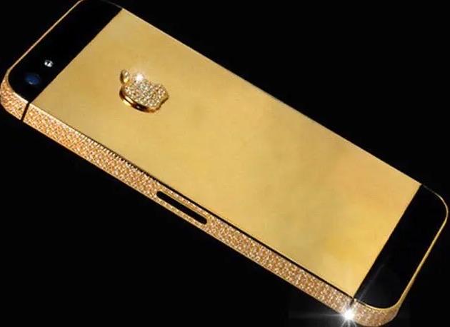 黄金钻石定制版iphone 5价值竟达到一个亿之多。【周边网】据说这是一位来自香港的神秘富豪专门定制的,总共耗时9个月的时间,手工制成。为了凸显这款手机的独一无二,整体屏幕采用的是蓝宝石玻璃,并采用了一枚26克拉的黑钻放置于Home键。除了黑钻,整个手机的周边耗费了600颗白钻以及135克的24K黄金,仅背部的苹果图标就镶嵌了53颗钻石。它在性能上于普通的iphone 5并无差异,但是外观简直完胜!
