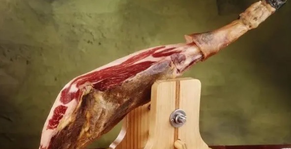 伊比利亚火腿,由产自西班牙的伊比利亚猪后腿肉腌制36个月而成,味道十分鲜美。最好的伊比利亚火腿来自自由放养的伊比利亚黑毛猪,据说这种猪是由地中海猪和非洲野猪经过数百年的自然交配而衍生出的特殊品种;根据吉尼斯世界纪录,最贵的伊比利亚火腿的售价高达3192镑(近3万人民币)。