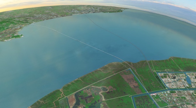 “杭州湾跨海大桥是南通至宁波高速铁路的控制性工程,大桥全长29.158km,是全世界最长、建设标准最高的跨海高速铁路桥,是世界第一座强潮海湾、超低阻水率、全埋床式群桩基础的高速铁路跨海大桥,桥梁建设具有里程碑意义。”大桥勘察设计方之一、中铁大桥勘测设计院总工程师肖海珠说。