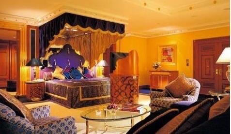 阿拉伯塔酒店就是我们俗称的迪拜帆船酒店,在它建成之时,也是世界上唯一的七星级酒店。阿拉伯塔酒店位于距离阿联酋迪拜海湾海岸线280米的人工岛上面,高321米,共有56层,是世界上最高的酒店。阿拉伯塔酒店内共有202套房,都是复式,房间最小的170平米,最大的是皇家总统套房780平米。最小的房价每日的住宿费为1500美金,约为9773元人民币;而最大的皇家总统套房每日的住宿费为20000美金,约为13万人民币。而房间里任何地方都是金灿灿的,连门把手、水龙头、烟灰缸、衣帽钩,甚至一张便条纸,都镀满了黄金。