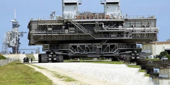美国航天局的爬行车运输车,算得上世界最大的车。它是一个像盒子一样的矩形钢结构,长41.2米,宽34.7米,高6.1米,自重2722吨,加上火箭、飞船、发射架和发射平台,总重达8100多吨。它的一前一后呈对角线的位置上,安装着两个驾驶室,因此前后都能开。驾驶室里安装了监视仪器、操作控制设备、电子设备,以及世界上最大的雨雪擦拭器和最慢的速度计。