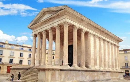 Maison Carrée建于公元前16年,是唯一一座保存完整的古罗马时期的神庙。Maison Carrée的高有15米,长有26米。它是罗马将军马库斯·维帕尼乌斯·阿格里帕为纪念他早逝的两个儿子而建造的。随着罗马帝国的灭亡,Maison Carrée在四世纪被改造成一座基督教堂,这一决定使这座雄伟的神庙免受其他罗马古迹所面临的忽视和破坏。从那时起,它被用于各种用途,比如:市政厅、马厩和仓库。目前,它是一座博物馆。