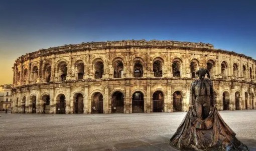 尼姆露天剧场建造于奥古斯都时期(公元70年),也被称为尼姆竞技场。它是高卢最大的露天剧场之一,可容纳约24000个座位。在1863年左右,竞技场被改造成了一个巨大的斗牛场。至今仍用来举办一年一度的斗牛比赛。