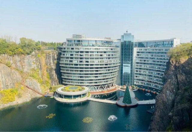 虽然前两者都很棒,但网友觉得最霸气的就属我国上海的深坑酒店无疑了。上海深坑酒店是我国唯一一个在采石坑内建造的自然生态酒店。由于之前我国并没有这种经验,因此深坑酒店在建设时挑战难度极大。负88米的高度其中有15层耸立在坑中,只有2层跨于坑外,还要在这样的基础上开创水下套房,难度系数可想而知。除此之外,观景台的设计还要保证可让游客看到陡峭的绝壁和奔腾的瀑布,给游客和以往不一样的观景效果,因此,深坑酒店被网友评为最壮观的建筑之一。