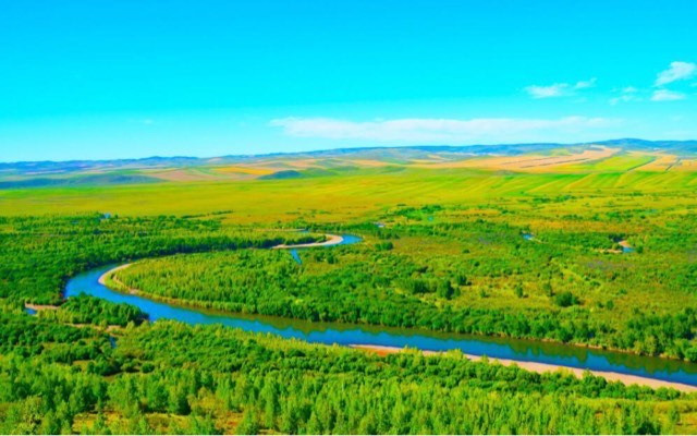 因为旁边有呼伦湖和贝尔湖因此而得名的呼伦贝尔草原,这里的草原风光非常绮丽,来到这里让人整个都放松下来,觉得心旷神怡,站在大草原上草原绿茵如毯,鲜花烂漫,蒙古包点点,犹如绿海中的白帆,微风吹过,羊群如流云飞絮,点缀其间,景色十分美丽。