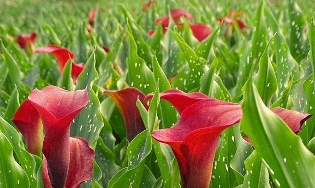 红色马蹄莲的花语:圣洁虔诚,吉祥如意,永结同心。