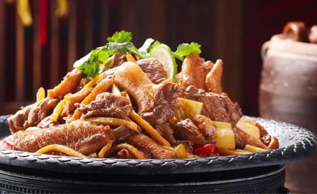 南宁武鸣一带的特色小吃,通过将切好的鸭肉,与辣椒、酸姜、酸柠檬、蒜头、豆豉等材料放入锅内炒熟,鸭肉酥华不油腻,味道酸中带辣,鲜香可口,被评为广西十大经典名菜之一。